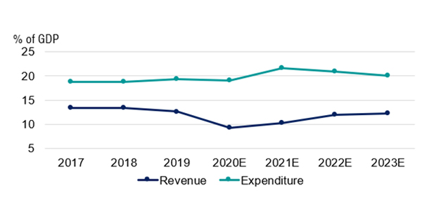Fiscal deficit to reach ~11.3% of GDP in 2021, with government revenue at ~10.3% of GDP