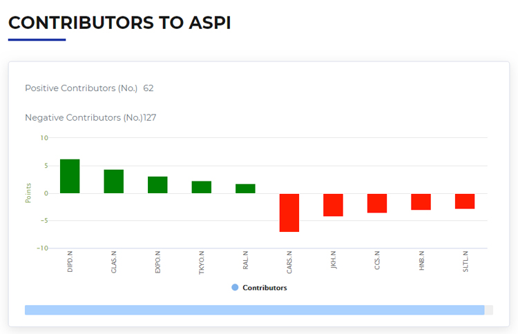 Meanwhile, today, 62 companies contributed positively to the ASPI’s gain and 127 companies contributed negatively. Stocks which contributed most to ASPI’s fall were Carson Cumberbatch PLC, John Keells Holdings, Ceylon Cold Stores, HNB and Sri Lanka Telecom.