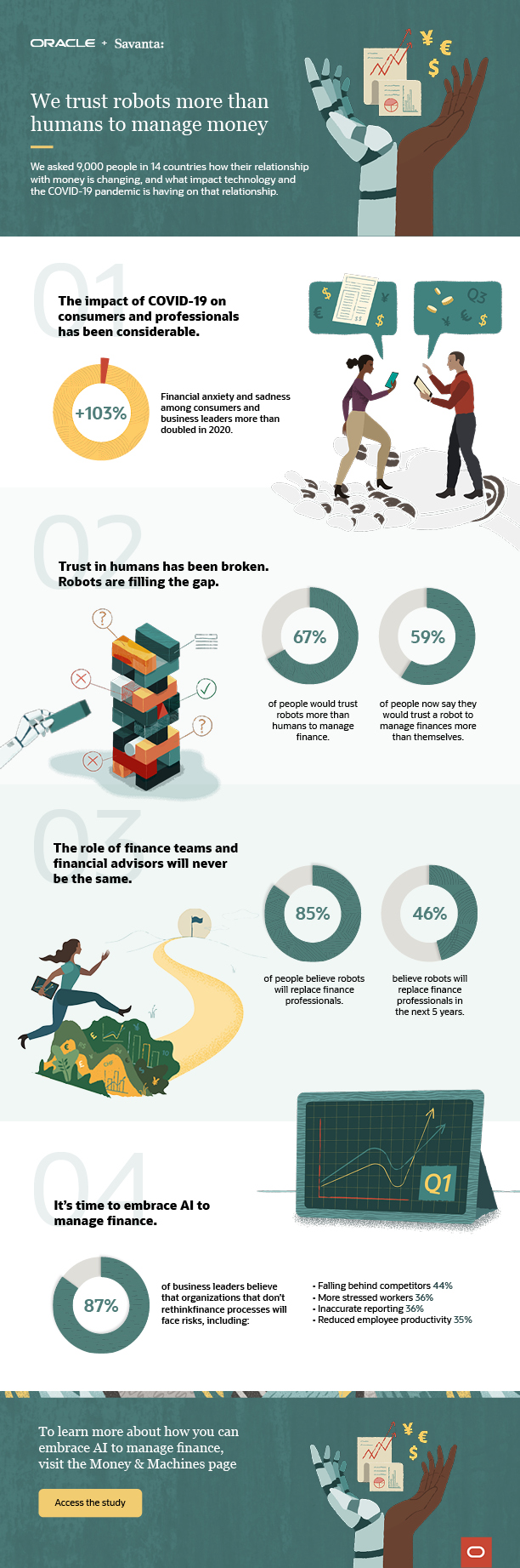 The financial uncertainty created by COVID-19 has changed who and what we trust to manage our finances. To help navigate financial complexity, consumers and business leaders increasingly trust technology over people to help.