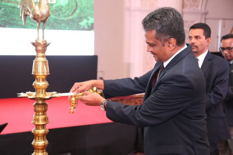 Senior Professor Buddhi Marambe, from the Faculty of Agriculture, University of Peradeniya lighting the oil lamp at the event