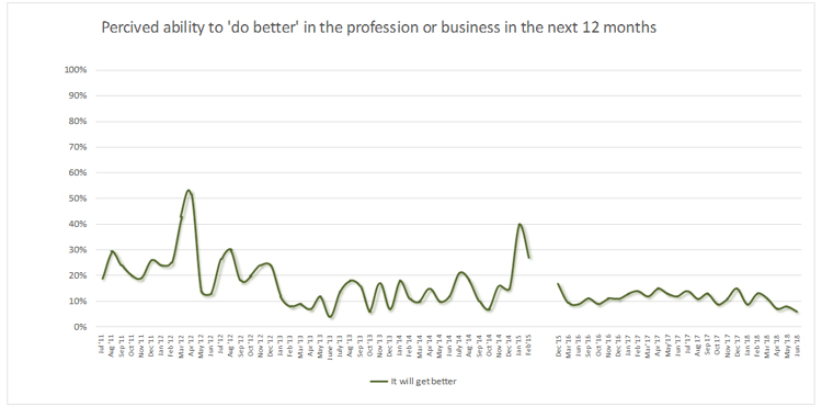 Analysis of the perceived economic opportunities in the months of April, May and June 2018 indicate that the expectations in terms of job prospects of people or developing the status of their business in the ensuing 12 months has reduced compared to the first quarter of year 2018.