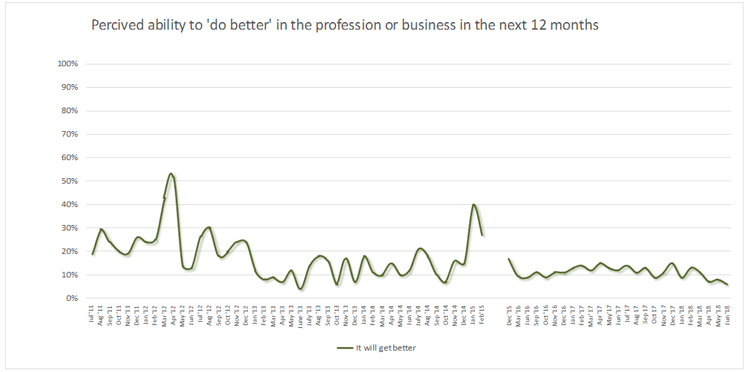 The below graph shows the change of expectations in terms of job prospects of people, or development of the status of their business, in the ensuing 12 months.