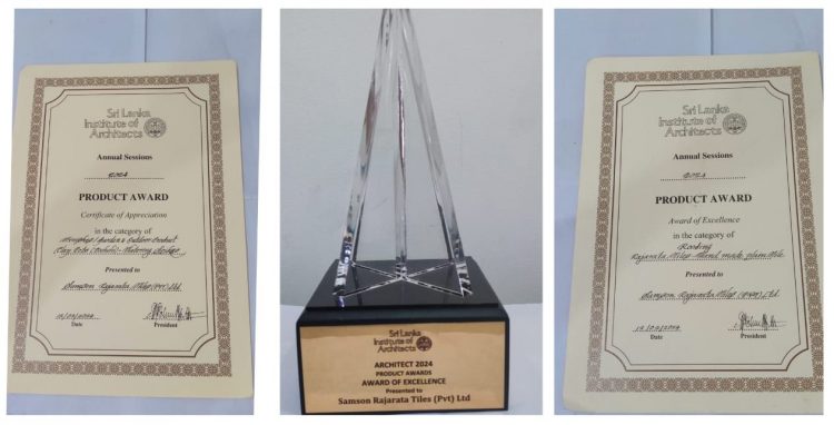 Samson Rajarata Tiles, a fully owned subsidiary of D Samson Group, commonly known as DSI, one of Sri Lanka’s largest business conglomerates operating in 16 sectors with 22 strategic business units, was recently honored for its Handmade Plain Tile and revolutionary Self-Watering Spike gardening solution at the prestigious Product Excellence Awards 2024. These awards, organized by the Sri Lanka Institute of Architects (SLIA) as part of its Annual Awards, highlight the company’s stature at the forefront of sustainable construction materials and gardening solutions.