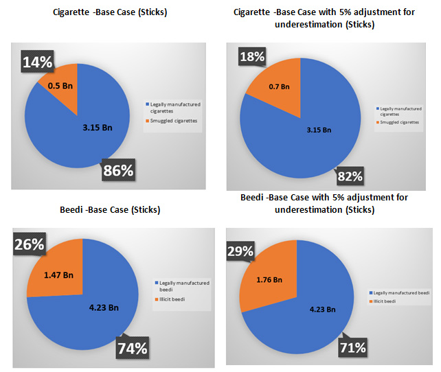 The report which provides insights on the trade of smuggled cigarettes says the illicit market share is around 14 to 18 percent for cigarettes and 26 to 29 percent for beedi which translate to 500 to 700 million sticks of cigarettes and 1400 to 1700 million sticks of beedi in 2018. “In other words, the smuggled cigarette market turnover could be anywhere between 15 to 20 billion rupees which is about 11 to 15 percent of the value of the legitimate market size while illicit beedi market is worth 4 to 5 billion rupees which is about 5 to 6 percent of the value of the legitimate market.” This massive size and value of the illicit market means loss of revenue for the government, to the industry, and for those whose livelihoods are connected with legal tobacco industry such as tobacco farmers and beedi rollers.