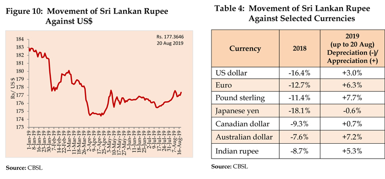 The Sri Lankan rupee appreciated by 3.0% against the US dollar during the year up to 20 August 2019, latest External Sector Performance report of the Central Bank of Sri Lanka outlines.
