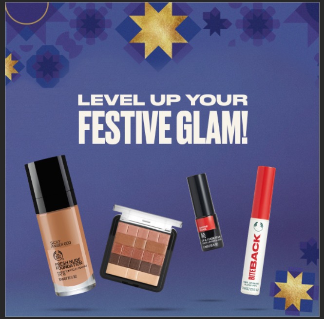 Now let’s talk make up. Whether you feel like looking your natural best or amping up the glam, The Body Shop’s wide range of beauty products give you the freedom to choose the look you want- on your own terms. From foundation to eye shadow, lip gloss to mascara, be the belle of the festive ball while keeping your skin cared for at the same time.