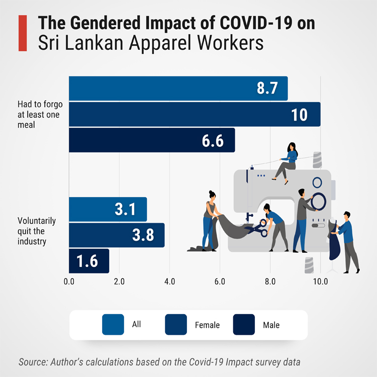The COVID-19 pandemic severely impacted the livelihoods of millions of workers across Sri Lanka. The manufacturing sector, where workers are in very close proximity to one another, faced more challenging conditions than other sectors such as agriculture. Given the significance of the apparel industry in the manufacturing base and as a source of employment in Sri Lanka, this blog assesses the pandemic's impact on female apparel workers and guides future policies to minismise the cost of similar episodes.