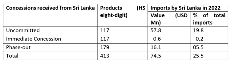 Table 2: Distribution of products in Sri Lanka’s offensive list as per SLTFTA concessions