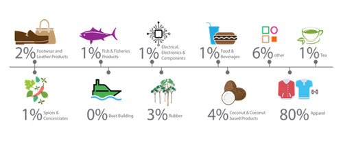 Apparel is the most exported product to the U.K. in the diversified product basket. However, it is visible that there are more opportunities to penetrate the U.K. market through an array of further diversified products. When considering the sectors identified in the National Export Strategy, there is only 0% - 2% exports in the U.K. Hence, it is important to identify the market orientation and the capabilities of Sri Lanka to cater the U.K. market in these product sectors.