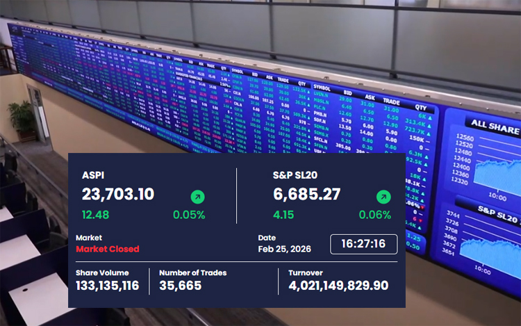 Sri Lanka’s stock market recorded a modest gain on Wednesday (25), with both key indices closing higher amid moderate trading activity at the Colombo Stock Exchange. The All Share Price Index (ASPI) rose by 12.48 points to close at 23,703.10, while the S&P SL20 Index gained 4.15 points to end at 6,685.27 at the close…