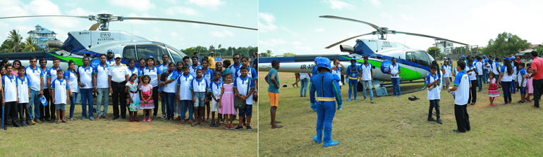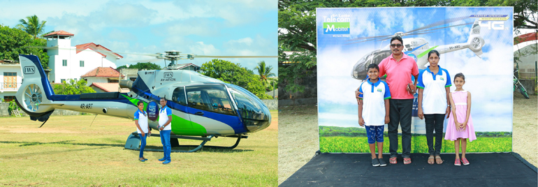Here, the winners of Mobitel 4G Nation Campaign pose for photographs with the helicopter before taking to the skies.