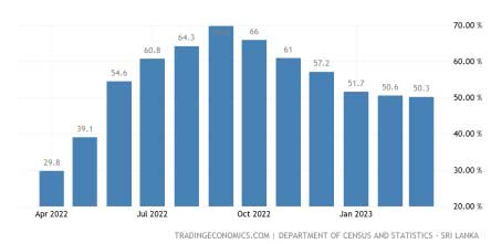 As seen in the table and chart below inflation reached dizzy heights, in excess of 70 percent, towards the third quarter. However, inflation began to fall slowly during the last quarter with the hiking of policy interest rates by the Central Bank. It should be noted that in January 2023, the base year for the measurement of inflation, the Colombo Consumer Price Index (CCPI), was updated to 2021 from 2013. The inflation figure for January 2023 as depicted here is 51.7 while the comparable figure for the same month using the previous index was 54.2.
