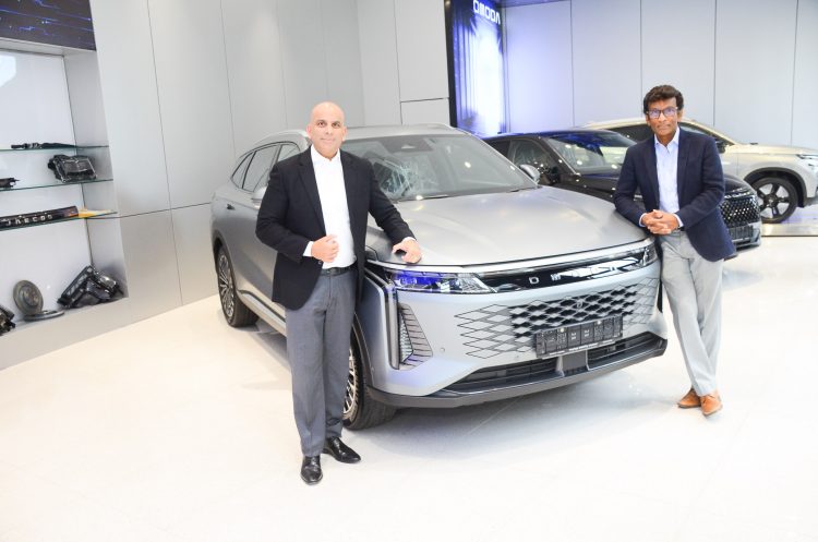 Pictured : Thilan Wijesinghe – Chairman TWC & Strategic Advisor to Blackstone / Altair with Rajieve Fernando - Chief Executive Officer Hayleys Mobility, at the JAECOO showroom at Altair