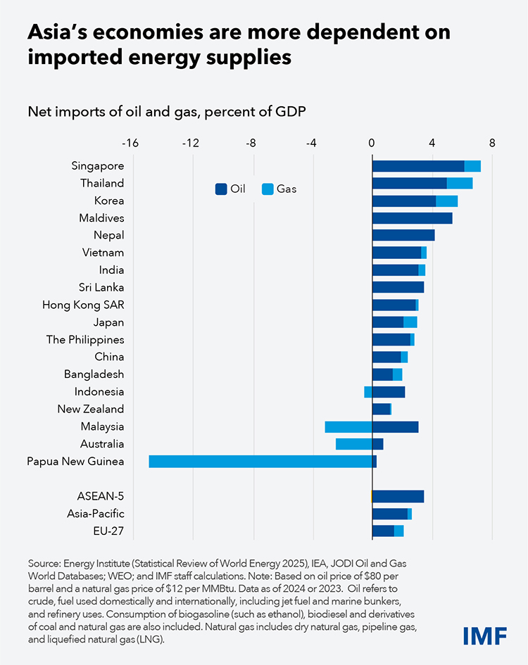 Asia entered 2026 on a strong footing. Despite the region bearing the brunt of US tariffs last April and persistent trade policy uncertainty, growth was resilient in 2025 and trade remained robust. Now, the war in the Middle East and the ensuing energy supply shock are raising inflation, weakening external balances, and narrowing policy options, underscoring the region’s dependence on imported oil and gas.