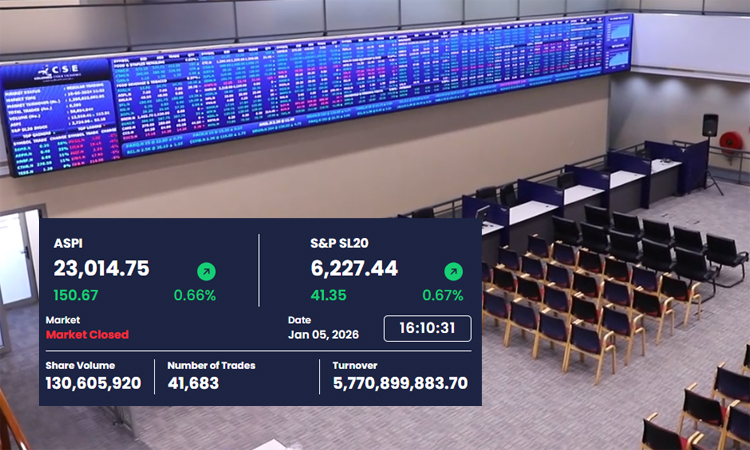 The Colombo Stock Exchange (CSE) ended trading on Monday (05) on a strong note, with the All Share Price Index (ASPI) once again closing above the key 23,000-point level.