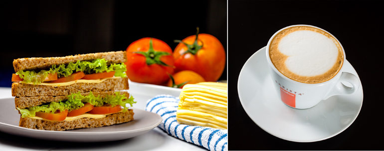 Pol Sambol and Fried Egg with Cheese, Ham and Cheese with Mustard, Cheese and Tomato, Spicy Polos, and the latest additions of Devilled Sprats, Spicy Fish, Egg Salad and Seeni Sambol are the choices of sandwiches while for beverages you can choose from Tea, Iced Latte, or Cappuccino.