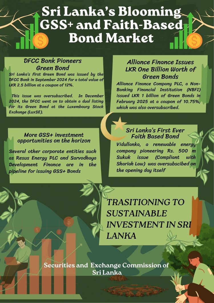 The Securities and Exchange Commission of Sri Lanka serves as both the gatekeeper and facilitator of bond investments. Acting like a financial referee, the SEC creates rules and approval processes that allow companies to borrow money from the public through bonds while protecting investors from fraud and misinformation. Their dual role as regulator and facilitator has enabled the development of innovative bond markets, ensuring that when companies want to issue bonds, they must provide complete and honest information about their finances and intentions. Through this careful oversight and facilitation, the SEC has made possible the following bond categories that serve both investor returns and broader societal goals: