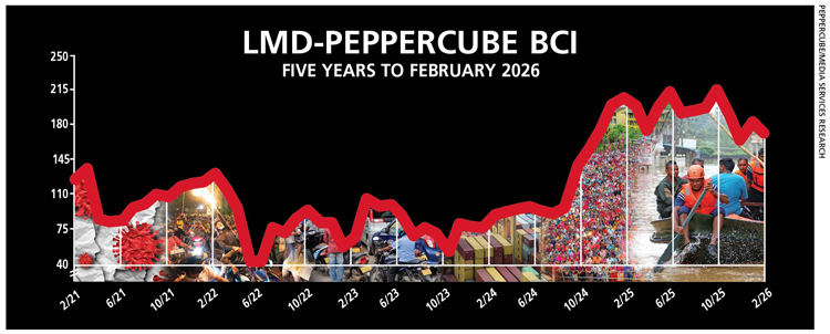According to PepperCube Consultants, the February BCI continues to reflect lingering uncertainty and the prospect of an economic slowdown following Cyclone Ditwah, which disrupted business activities in December.