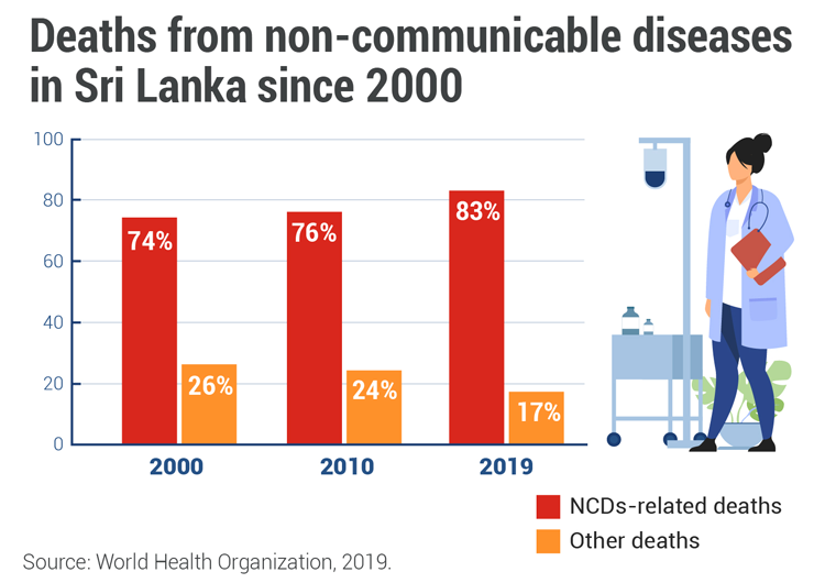 Non-communicable diseases (NCDs) have posed a critical health challenge for Sri Lanka for several decades. Estimated to account for 83 per cent of all deaths in Sri Lanka today, NCDs have serious health and economic consequences for both individuals and the country.[1] In 2000 and 2010, the deaths that occurred due to NCDs were estimated…
