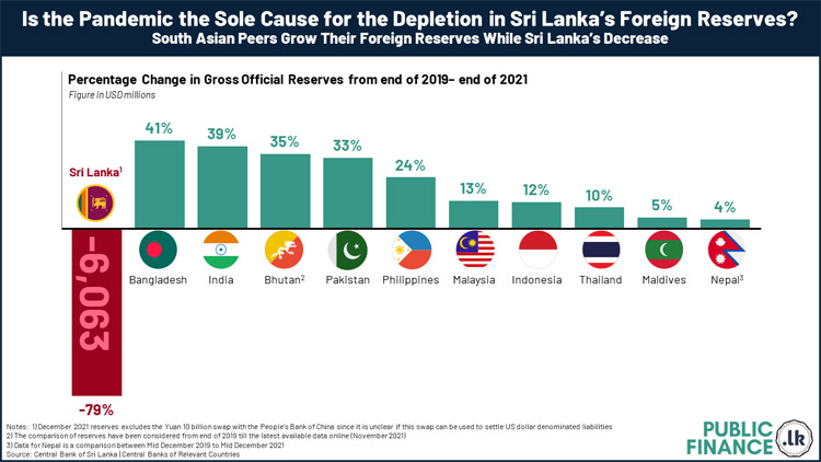 Sri Lanka’s usable foreign reserves fell from USD 7,642 MN in 2019 to USD 1,579 MN by the end of 2021. When compared with Sri Lanka’s regional peers during the pandemic, the decline in its reserves appears to only have happened to Sri Lanka, while its other Asian countries have seen an increase in their reserve…