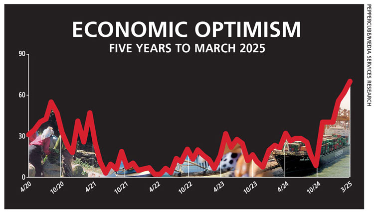 Economic optimism reaches a six month high amid heightened business activity There’s been a ground swell surrounding the economic outlook among businesspeople with the gauge of sentiment marking a six month high in March. PepperCube Consultants says this reflects robust sales volume projections and increased activity. “A significant portion of companies are maintaining a growth…