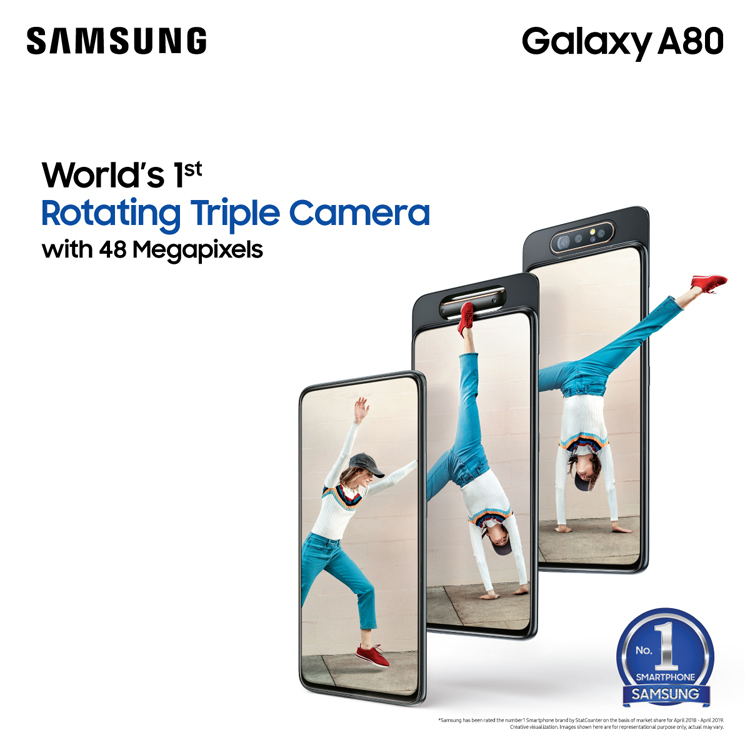 The Galaxy A80 of the popular Galaxy A line in 2019 offers compelling innovations with the world’s first rotating triple camera with 48MP and a level of performance that is simply unmatched by any smartphone camera so far in the range. Galaxy A80 brings exceptional efficiency and revolutionary power to Galaxy A line. Samsung Sri…