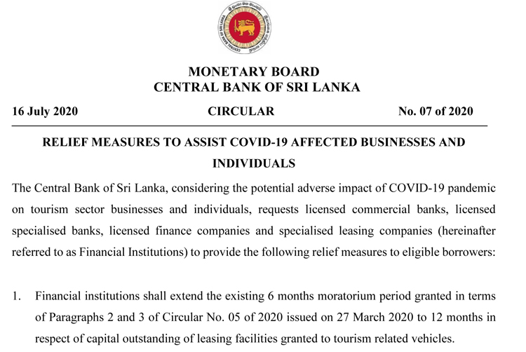 The Central Bank of Sri Lanka (CBSL) has decided to provide further relief measures to assist tourism sector businesses and individuals who are adversely affected by the prevailing COVID-19 outbreak. Hence, issuing a circular yesterday (16) the CBSL requested all licensed commercial banks, licensed specialised banks, licensed finance companies and specialised leasing companies (hereinafter referred to…