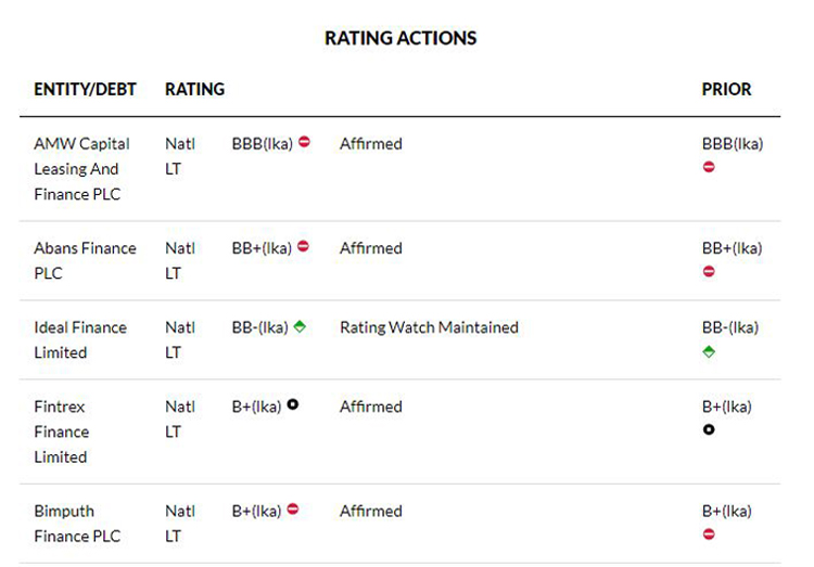 Fitch Ratings has affirmed the National Long-Term Ratings of the following four Sri Lankan finance and leasing companies: -AMW Capital Leasing And Finance PLC (AMWCL) at ‘BBB(lka)’; Outlook Negative -Abans Finance PLC at ‘BB+(lka)’; Outlook Negative -Fintrex Finance Limited at ‘B+(lka)’; Outlook Stable -Bimputh Finance PLC at ‘B+(lka)’; Outlook Negative In addition, Fitch has maintained…