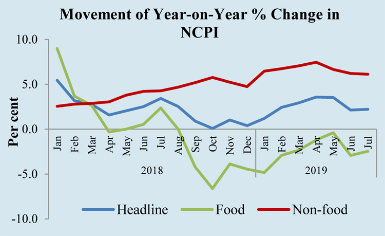 Issuing National Consumer Price Index (NCPI), for the month of July 2019, Director General of Census and Statistics said that headline inflation as measured by the Year on Year change based on NCPI has been compiled as 2.2%. The headline inflation reported for the month of June 2019 was 2.1%. Contributions to the inflation in…