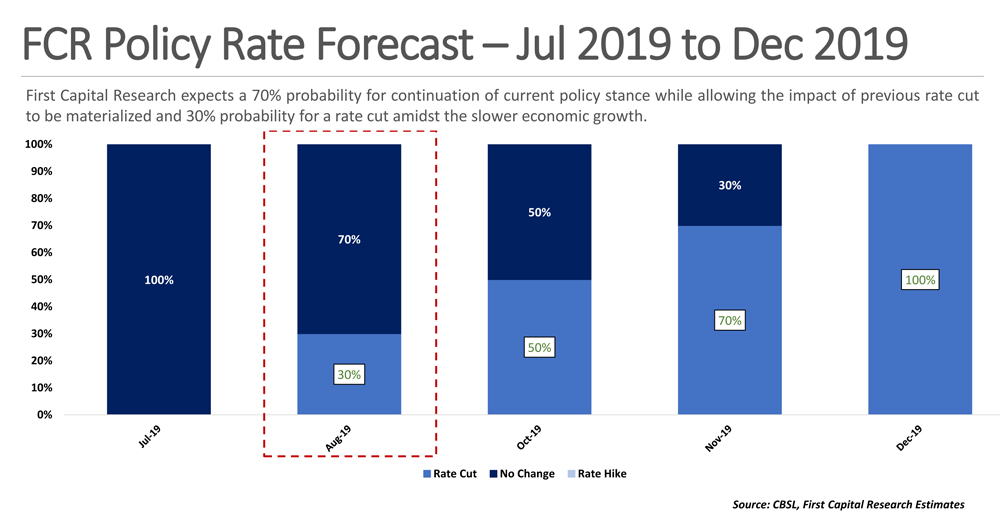 With manufacturing and credit signaling signs of recovery in economy and vulnerabilities affecting the external outlook, Sri Lanka’s First Capital Research believes that the Central Bank may delay the monetary easing while allowing the impact of the previous rate cut to materialise. Accordingly First Capital Research assigned a higher probability of 70% for a neutral…