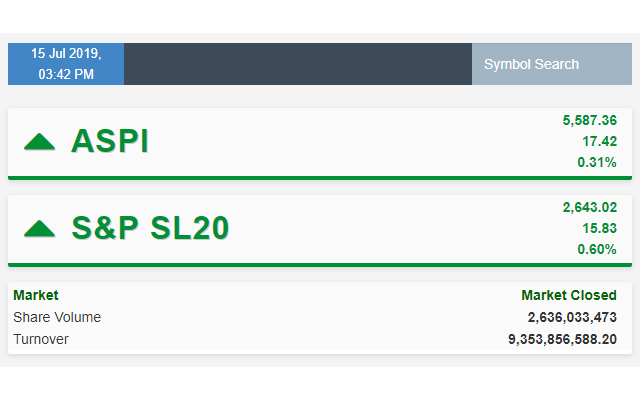 Sri Lanka’s Colombo Stock Exchange (CSE) today (15) reported its highest daily turnover for the year by crossing Rs.9 Billion mark due to a block trade in LOLC Finance PLC. Colombo’s All Share Price index (ASPI) closed 17.42 points up at 5,587.36. The S&P SL20 index of more liquid stocks closed 0.68 percent or 17.79…