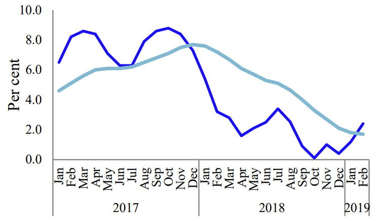 Headline inflation as measured by the yearon-year change in the National Consumer Price Index (NCPI, 2013=100) increased to 2.4 per cent in February 2019 from 1.2 per cent in January 2019 mainly due to the base effect. Meanwhile, year-on-year Non-food inflation increased to 6.7 per cent in February 2019 from 6.5 per cent in January…