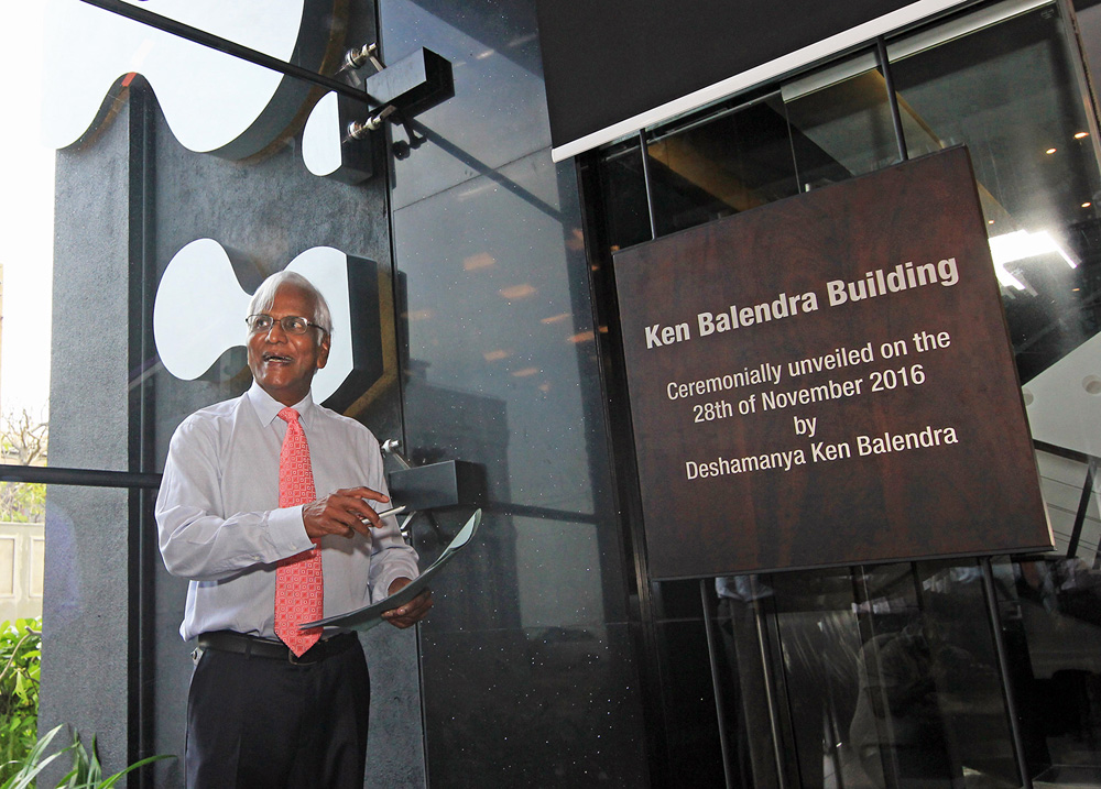 The Brandix Group has paid tribute to an inspirational trailblazer by naming its Head Office at Rheinland Place, Colombo 3, after the legendary business leader Ken Balendra, the Group’s first Chairman, at a simple ceremony held on Monday, 28th November 2016. Commissioned in April 2015, the seven-storey building will henceforth be known as the ‘Ken…
