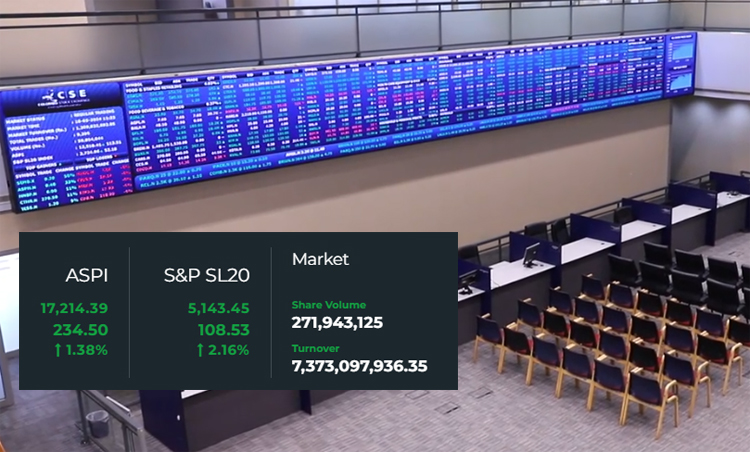 The All Share Price Index (ASPI) of the Colombo Stock Exchange closed at an all-time high today (03), after making significant gains before trading closed. Accordingly, the ASPI gained 234.50 points (1.38%) to close at 17,214.39. The previous record of 17,193.80 points was set on February 18, 2025. Meanwhile, the S&P SL20 has climbed 108.53…