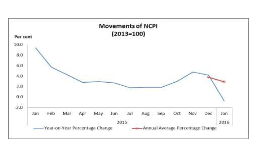 Inflation, as measured by the change in the National Consumer Price Index (NCPI) (2013=100), which is compiled by the Department of Census and Statistics, decreased to -0.7 per cent in January 2016 from 4.2 per cent in December 2015, on year-on-year basis mainly due to the higher base of the corresponding period in 2015. Annual…