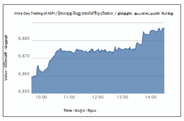 Colombo stock market extended the winning streak for the fourth consecutive day to conclude the weekly operations with positive returns on Friday, ahead of the final vote on budget 2016. Benchmark index stagnated in 6,874 mark in the first half but managed to close higher at 6,886.37, with an increase of 0.38% or 26.38 index…
