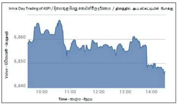 Colombo bourse began proceedings of the week on a positive note, but owing to the dull market activity throughout the day, the index ended at a low of 6,858.63 down by 10.93 index points or 0.16%. 20-scrip S&P SL index followed the trend by shedding 5.63 index points (-0.15%) to close at 3,632.93. Price depreciations…