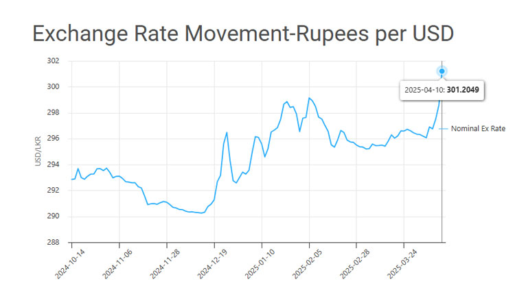 The Sri Lankan rupee has declined against the US dollar today (10), with the spot exchange rate surpassing the Rs. 300 mark for the first time since September 27, 2024. According to the daily exchange rate data released by the Central Bank of Sri Lanka (CBSL), the buying rate for the US dollar stands at…