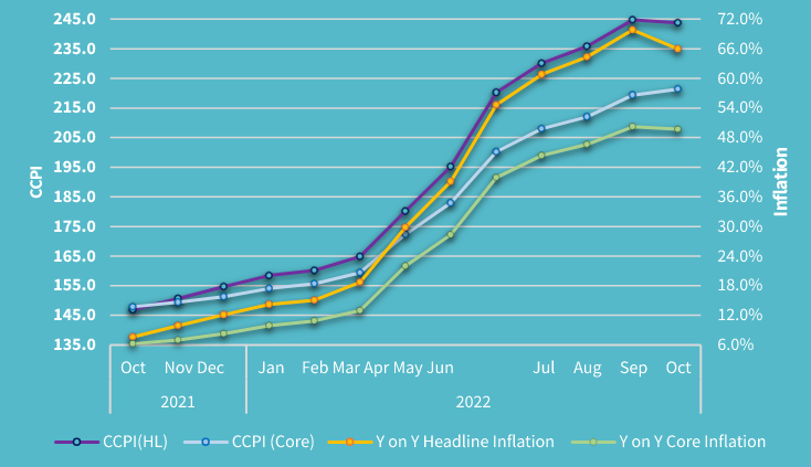 Consumer price gains peak as crippling shortages ease Central bank has paused after 950 basis point hikes this year Bloomberg – Sri Lanka’s inflation slowed in October for the first time in a year as shortages of food and fuel eased. The consumer price index in the capital Colombo cooled to 66% from a year…