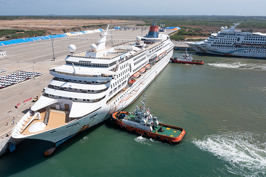 Two cruise ships MV Arius and MV Gem, each with capacity to carry more than 800 passengers, are currently berthed at the Hambantota International Port (HIP) for month long layups. The ship crews will remain on board for the period. “Hambantota International Port provides the best facilities in the region for all kinds of vessels…