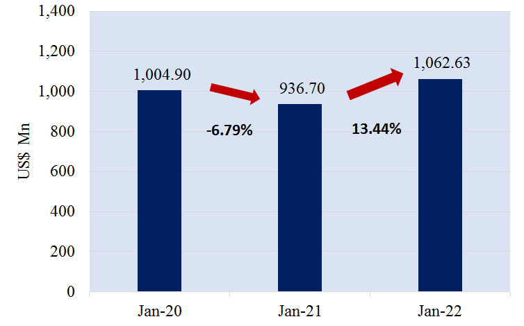 Sri Lanka’s merchandise exports increased by 13% to US$ 1,062.63 Million in January 2022 compared to January 2021 as per the data released by the Sri Lanka Customs. Further, it is a 5.7% increase when compared to January 2020. EDB Chairman, Suresh D de Mel said, “Exports performance in January 2022 has been remarkable and…