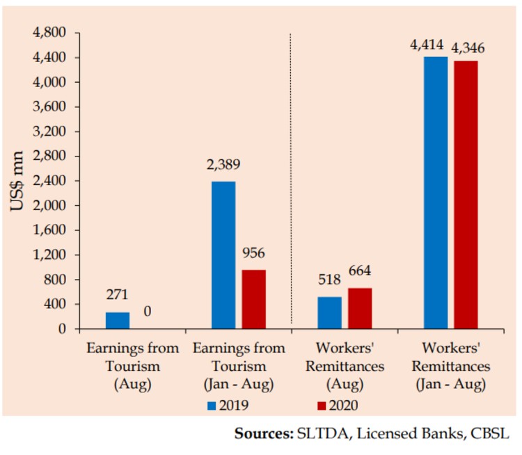 Sri Lanka’s gross official reserves were down by US$777.3 million to US$ 6,652.8 million in September 2020 from US$ 7,430.1 million in August 2020, latest Central Bank data showed. By the end of September, foreign currency reserves were 6,175.5 million dollars while the reserve position in the IMF was 67.4 million dollars. Reserves in Gold were 406.2 million and…