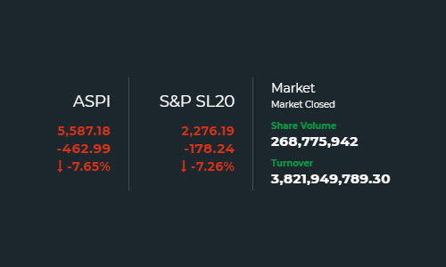 The All Share Price Index (ASPI) of the Colombo Stock Exchange (CSE) today (05) recorded the highest drop in a single day in history after the island nation reported the first case of Covid-19 community infection in several months. Sri Lanka’s only Capital Market All Share Price Index (ASPI) crashed down by 8.21% or 496.50…
