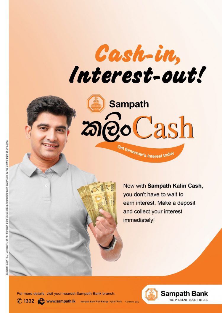 Collect Fixed Deposit interest immediately for the 1st time in Sri Lanka, only through Sampath ‘Kalin Cash’