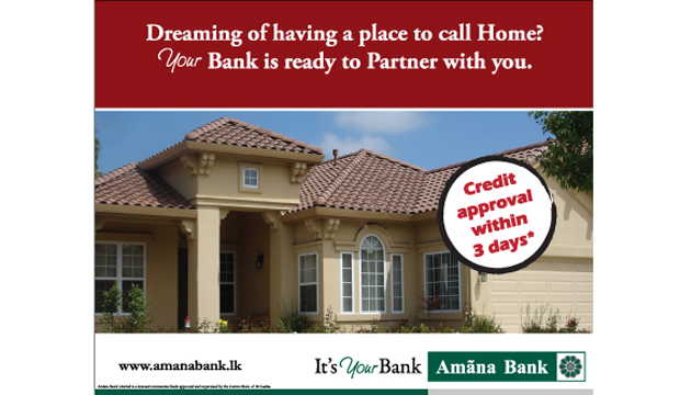 Amana Bank Home Finance Facility is designed for today’s home hunter and offers a number of benefits such as credit approval within 3 days, long term financing, a grace period of 12 months for construction and take over facilities, competitive rentals to suit your income capacity and many more. Customers can also calculate a monthly instalment to suit them best by visiting the Financing Calculator available on the Bank’s website www.amanabank.lk.