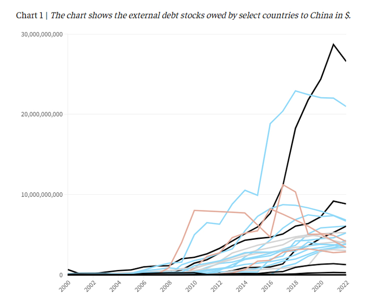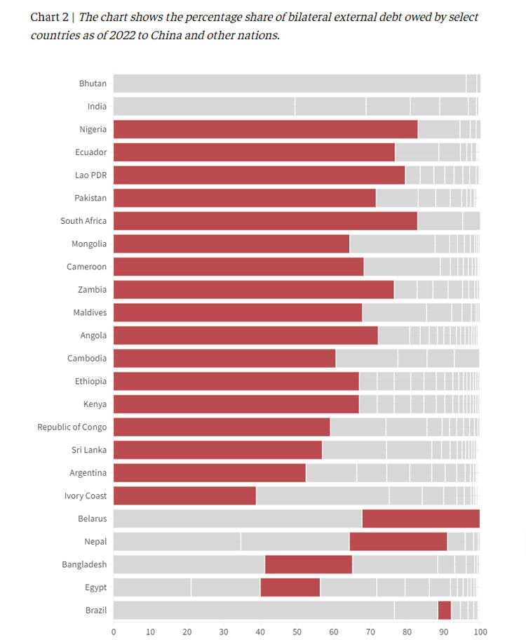 Debt owed by various countries, especially in South Asia and Africa, to China has multiplied in recent years. China is either the sole or the major lender for the majority of these countries. In other words, these nations owe a large share of their external debt only to China.