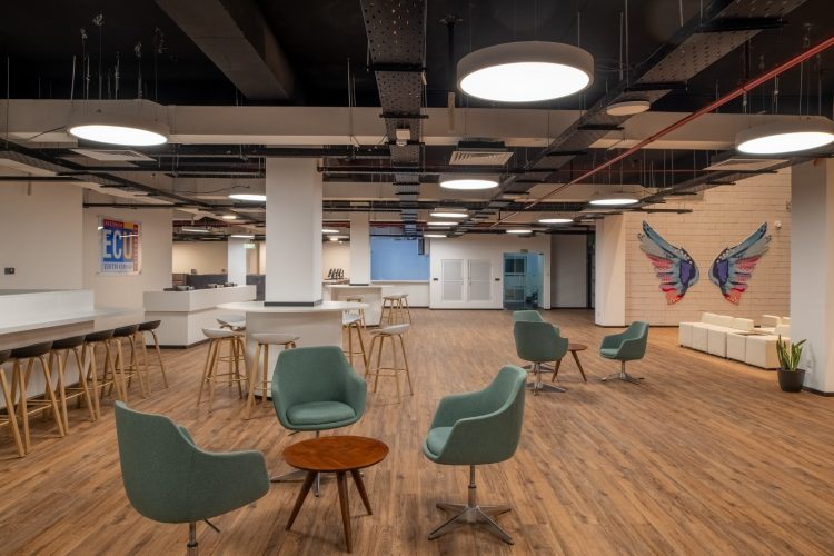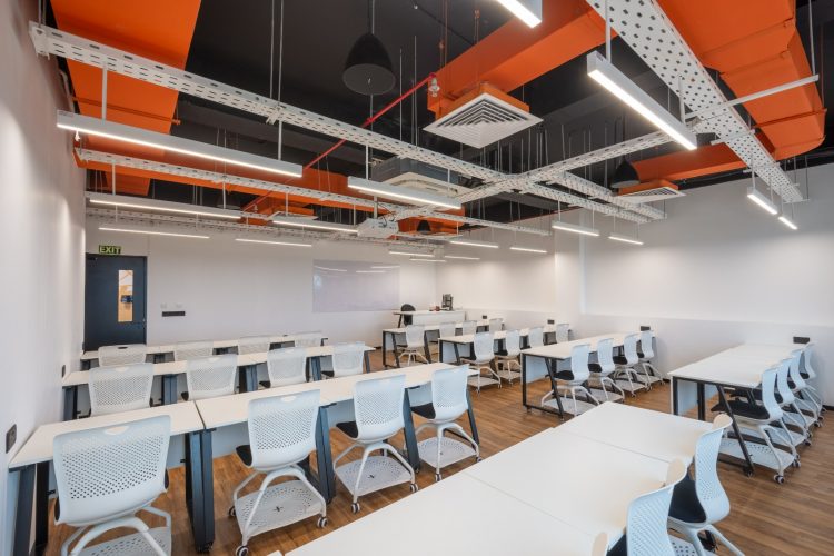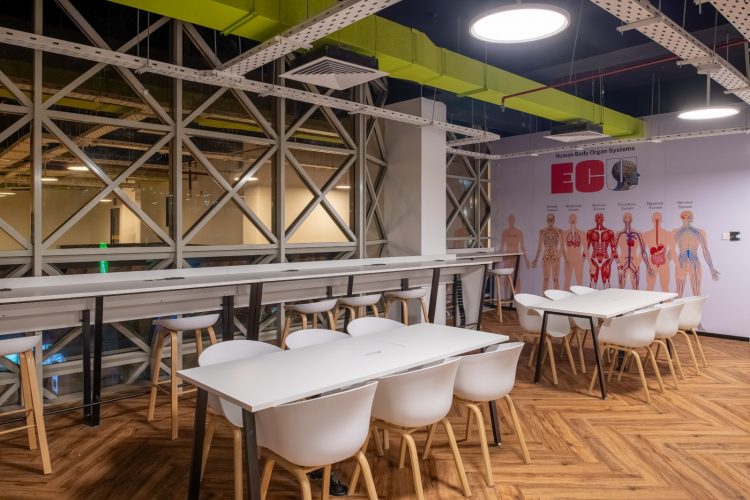 The work carried out included the reception, lobby, office areas, lecture halls, several laboratories to support the different disciplines, digital hubs, canteen, recreational areas, meeting rooms and restrooms, all of which were completed in under five months.