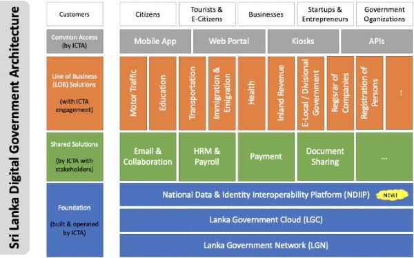 Fellow board member Wasantha Deshapriya (who retired from government last year as Secretary to the Digital Ministry) and I took overall responsibility for digital government. We started off with developing the overall architecture for a digital government (following up on the work I had lead last year in designing the National Data & Identity Interoperability Platform). Our scope was to develop a framework to make the government operate as a single integrated government, while adhering to strict privacy, data protection and security considerations.