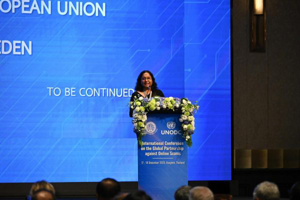 The Ministry of Foreign Affairs of Thailand, in partnership with the United Nations Office on Drugs and Crime (UNODC), successfully co-hosted the International Conference on the Global Partnership against Online Scams in Bangkok, Thailand. The Conference aimed to strengthen and complement ongoing regional and international efforts to combat online scams and to enhance global cooperation to address existing operational gaps in tackling this complex form of transnational crime. The event brought together over 300 participants from 60 countries, including ministerial-level representatives, senior officials, international organizations, the private sector, and civil society.