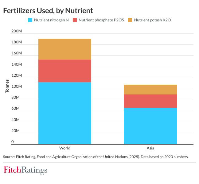 Fitch Ratings - Emerging markets in Asia would see rising cost pressure across agribusiness and food supply chains if a prolonged US-Iran war pushes fertiliser supply disruption deeper into the planting season, Fitch Ratings says. For these sectors, reduced fertiliser availability and higher prices would raise production costs, discourage application rates and weaken crop yields, which would lead to margin pressure and higher food prices later in 2026.